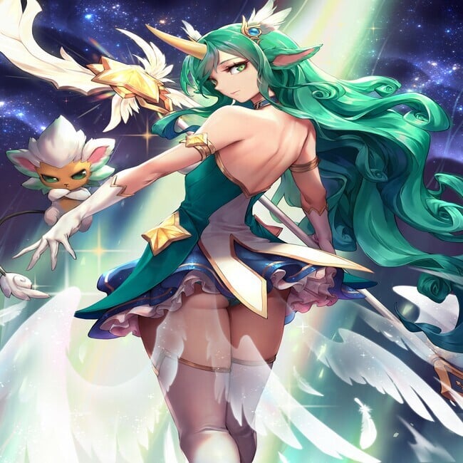 This is a picture of Soraka, a fictional character, a champion with the title of Elf in the game League of Legends.